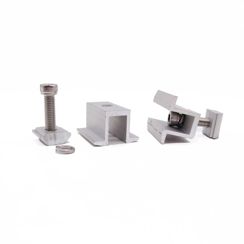 ミッドクランプとエンドクランプは、アルミニウムレールとソーラーパネルを接続するために使用されるアクセサリで、通常は2つのアルミニウム合金コーナーパーツで構成されます。ミッドクランプとエンドクランプは追加のサポートと安定性を提供し、ソーラーパネルが垂直または水平に安定した状態を保つことができます。